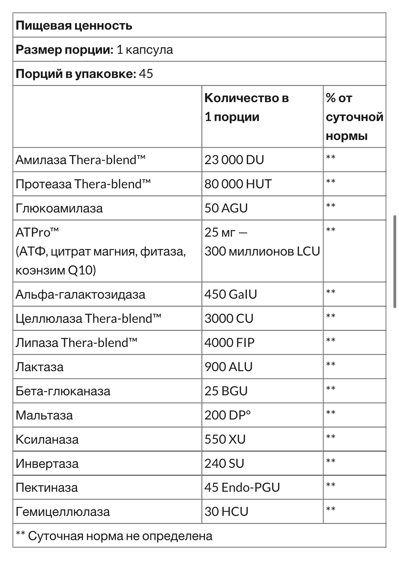 Thera-blend™ — это эксклюзивный процесс, объединяющий многочисленные виды ферментов, которые активны при различных уровнях pH. Было доказано, что ферменты, полученные методом Thera-blend, в три раза эффективнее и действуют более чем в шесть раз быстрее, чем наиболее популярные пищевые добавки для поддержки пищеварения.