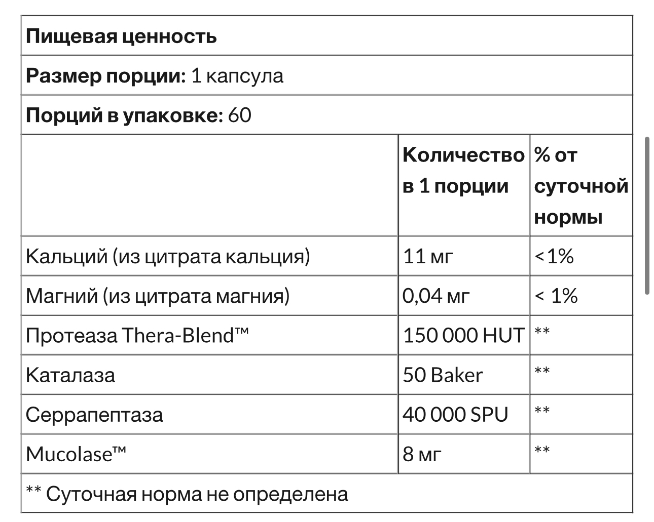 Enzyme Defense™ содержит протеолитические ферменты, которые помогают расщеплять нежелательные белки и поддерживают здоровье иммунной системы, дыхательных путей и носовых пазух. * В состав входят дополнительные ферменты, которые разжижают лишнюю мокроту.
