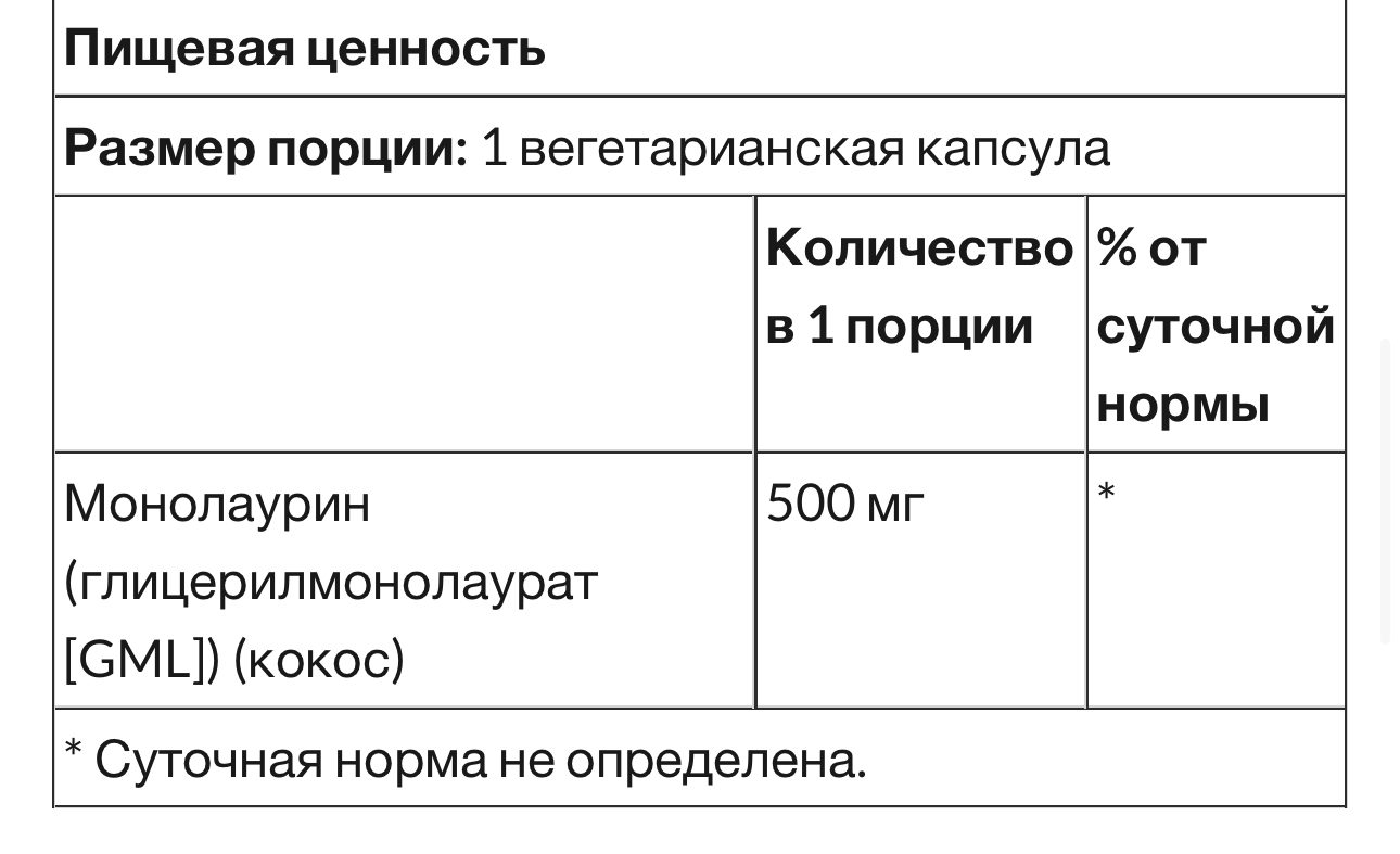 Описание. Монолаурин представляет собой моноэфир лауриновой кислоты — жирной кислоты, которая содержится в кокосовом масле и присутствует в грудном молоке. Он был изучен на предмет способности обеспечивать питательную поддержку иммунной системы
