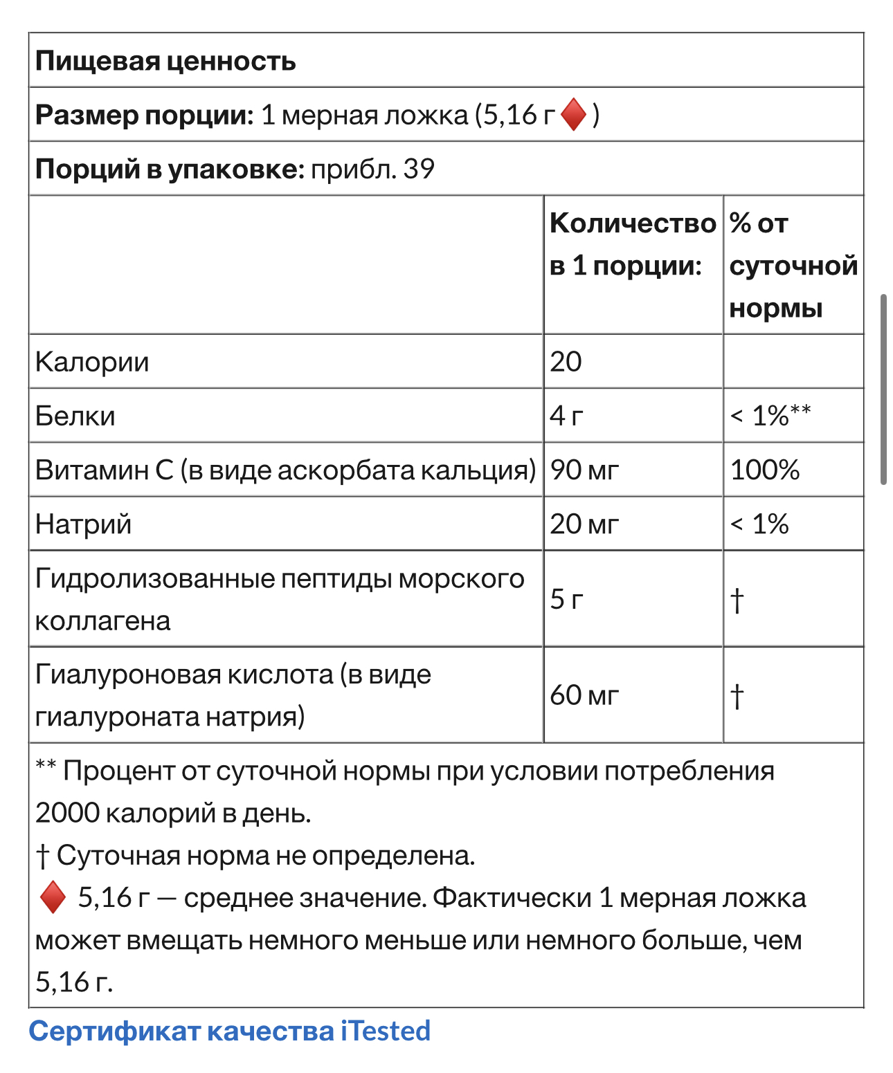 CollagenUP от California Gold Nutrition содержит пептиды морского коллагена (не бычьего происхождения), а также гиалуроновую кислоту и витамин C. Прошедший специальную обработку рыбий коллаген подвергается ферментативному гидролизу (расщеплению) до пептидов аминокислот с низким молекулярным весом, чтобы обеспечить оптимальную усвояемость и биодоступность*.