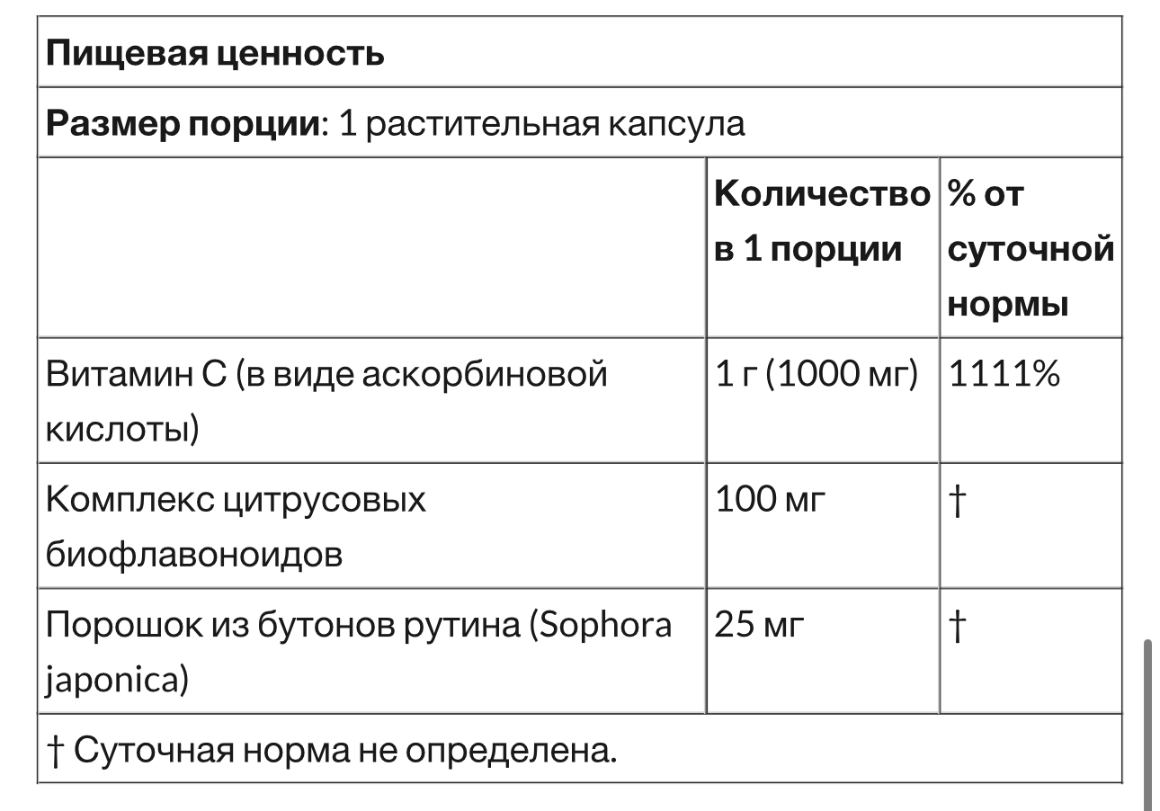 Витамин С- 1000 мг" таблетки No100Витамин С-1000 от NOW - это добавка для людей, ведущих активный образ жизни и спортсменов, кто ищет всестороннюю поддержку для иммунной системы. Регулярное употребление витамина C снижает риск развития простуд и хронических заболеваний сердечно-сосудистой системы, оказывает омолаживающий эффект и не допускает преждевременного старения. Кроме того, добавка благотворно влияет на кожу и волосы, улучшает здоровья суставов и связок. В каждой таблетке вы получите высокое содержание витамина - 1000 мг.Витамин C в составе Now Foods С 1000 — это незаменимое питательное вещество, имеющее огромное значение для работы иммунной системы, особенно это важно для спортсменов. Это высокоэффективный антиоксидант, защищающий системы организма от последствий процесса окисления, сопровождающего нормальный обмен веществ. Кроме того, витамин C необходим для выработки коллагена и, следовательно, важен для поддержания здоровья кожи, костей и суставов. Этот продукт содержит биофлавоноиды, которые действуют синергетически, способствуя усвоению витамина С.Now Foods Витамин C (аскорбиновая кислота) помогает иммунной системе держаться в тонусе. Витамин C необходим для всех тканей и органов. Человеческий организм не в силах вырабатывать и накапливать аскорбиновую кислоту, для того чтобы ему помочь, необходимо на регулярной основе включать продукты питания или препараты с содержанием витамина C.Витамин С является водорастворимым питательным веществом, хорошо известным своей жизненно важной ролью в иммунной системе. Нау витамин С 1000 Витамин С необходим для метаболизма аминокислот, синтеза нейротрансмиттеров и использования многих питательных веществ, таких как фолиевая кислота и железо. Это также высокоэффективный антиоксидант, который помогает поддерживать здоровье тканей, нейтрализуя свободные радикалы, образующиеся при нормальном обмене веществ и воздействии стрессовых факторов окружающей среды. Этот продукт включает биофлавоноиды, которые работают синергетически, поддерживая усвоение витамина С. В этом продукте могут возникать естественные изменения цвета.Пищевая добавка Витамин С 1000 мг оказывает положительное действие на весь организм. Применение комплекса позволяет восполнить дефицит активного вещества и нормализовать функции разных систем. Основные свойства препарата: