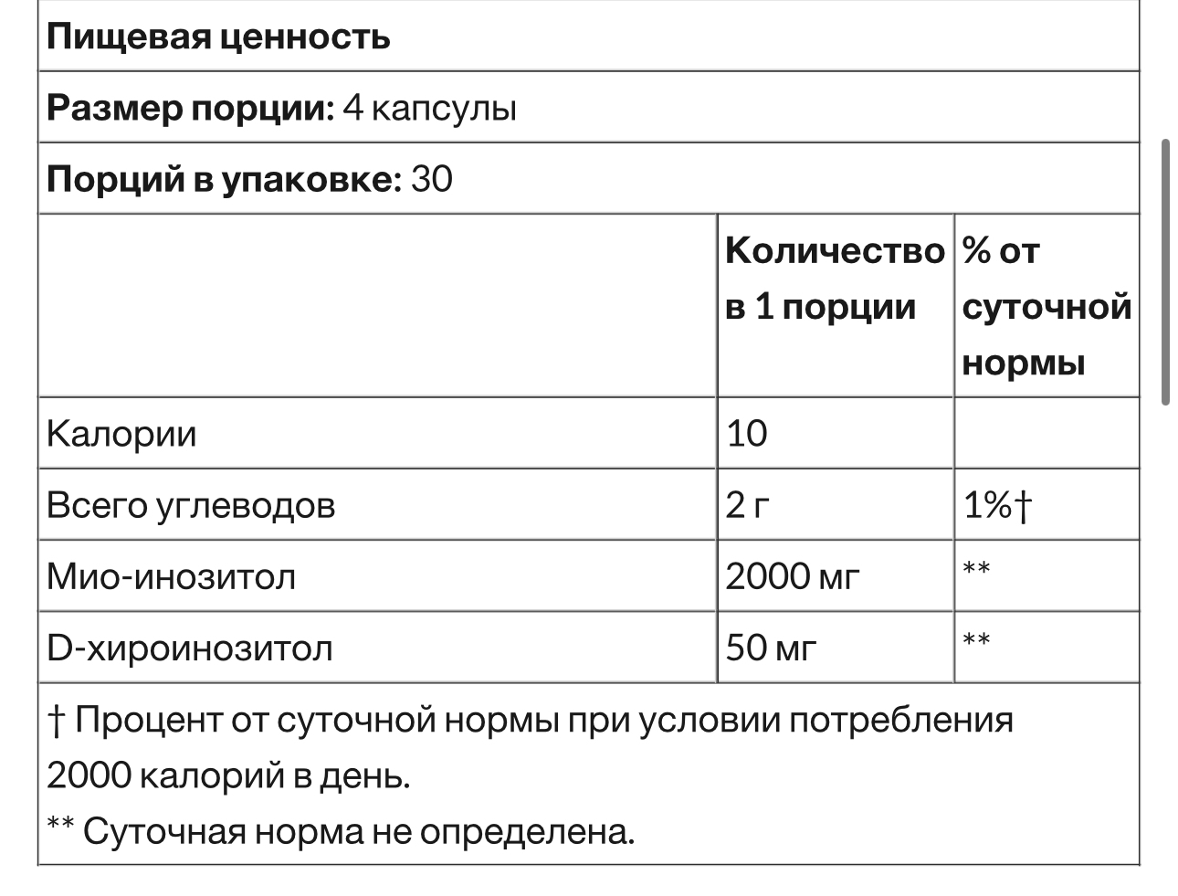 С мио-инозитолом и D-хиро инозитолом в соотношении 40:1