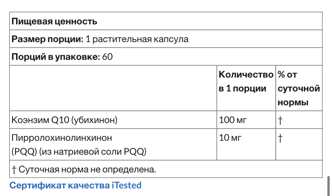 Возраст и прием некоторых препаратов, например статинов, могут повлиять на способность организма вырабатывать достаточное количество коэнзима Q10, что делает добавки отличным решением для повышения уровня этого важного антиоксиданта в организме*. Достаточное количество коэнзима Q10 может улучшить кровоток и защитить кровеносные сосуды, что способствует здоровью сердечно-сосудистой системы*. Кроме того, коэнзим Q10 и PQQ играют важную роль в выработке энергии в клетках, способствуя общему здоровому функционированию клеток*.