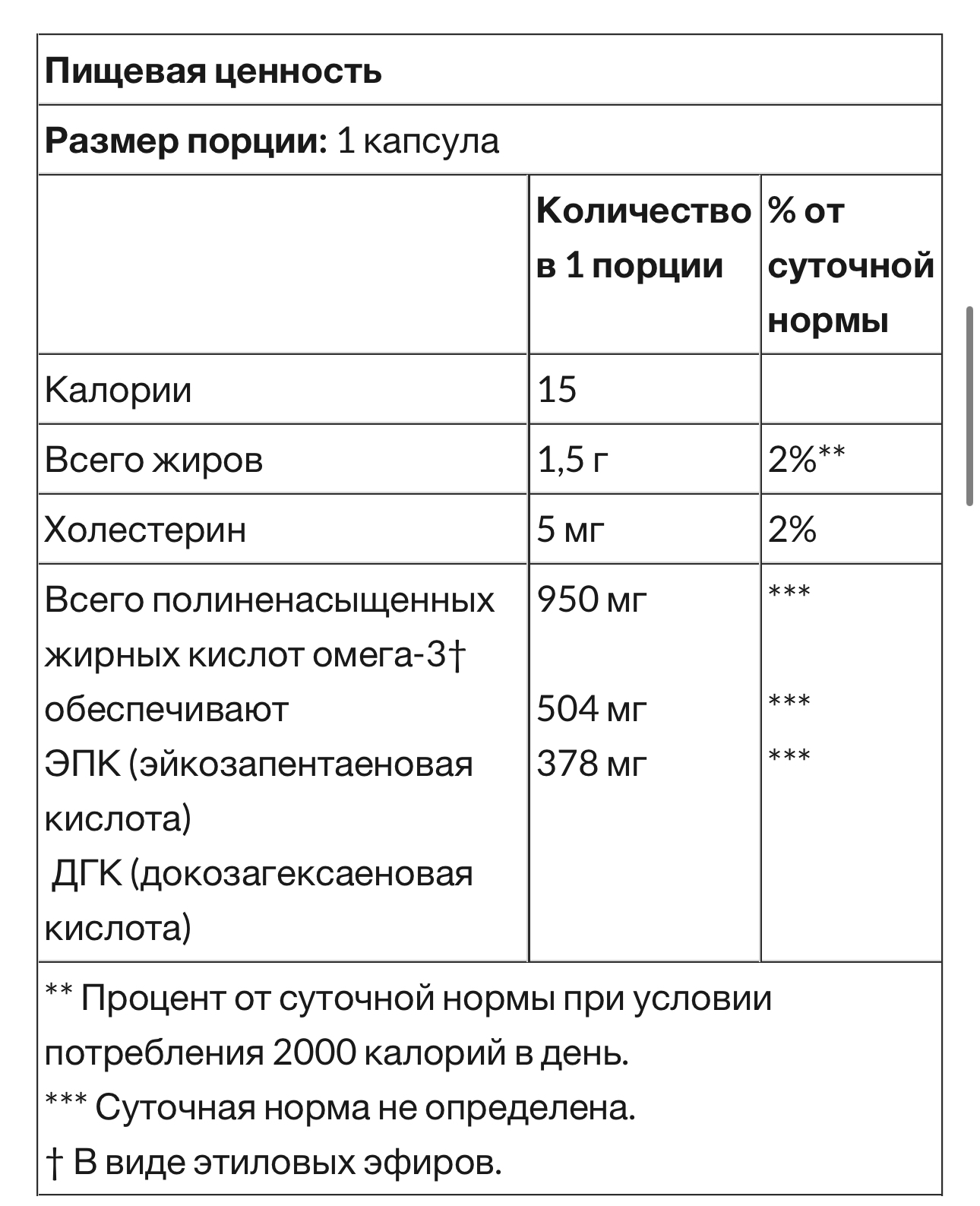 Омега-3 (950 мг) от Solgar — это самый высококонцентрированный источник омега-3 полиненасыщенных кислот ЭПК и ДГК из холоднолюбивой рыбы. Данный препарат помогает поддерживать здоровье сердечно-сосудистой системы, суставов и кожи. Продукт очищается на молекулярном уровне для устранения ртути.