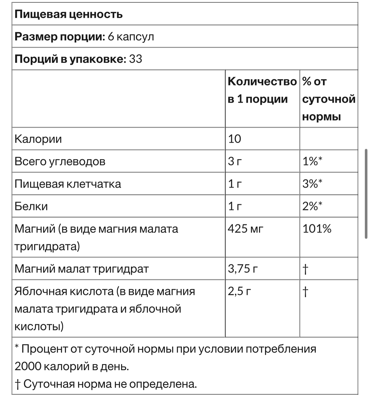 Препарат «Яблочнокислый магний» от Source Naturals сочетает в себе магний и яблочную кислоту. Он поддерживает мышечную функцию, здоровье сердечно-сосудистой системы и способствует производству энергии. Яблочная кислота — натуральная фруктовая кислота, содержащаяся в большинстве клеток организма и участвует в цикле Кребса, в котором энергия сохраняется во время метаболизма углеводов и жиров. Магний — кофактор, необходимый для более чем 300 ферментных реакций метаболизма, синтеза АТФ и производства энергии. Магний играет важную роль в расслаблении мышц, поскольку является кофактором ферментов, а также способен уравновешивать уровень кальция в клетках.