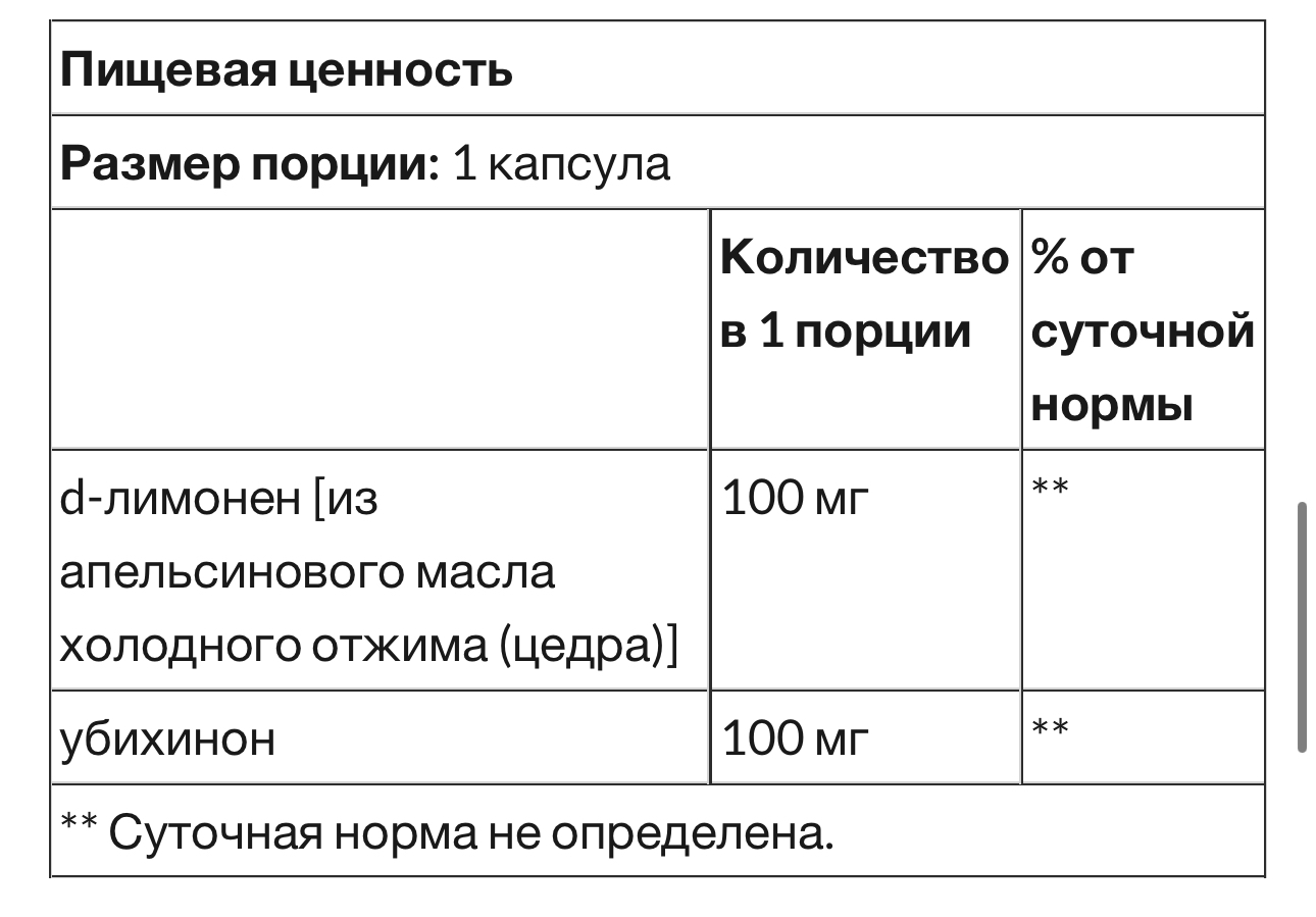Суперусваиваемый коэнзим Q10 (убихинон) с d-лимоненом